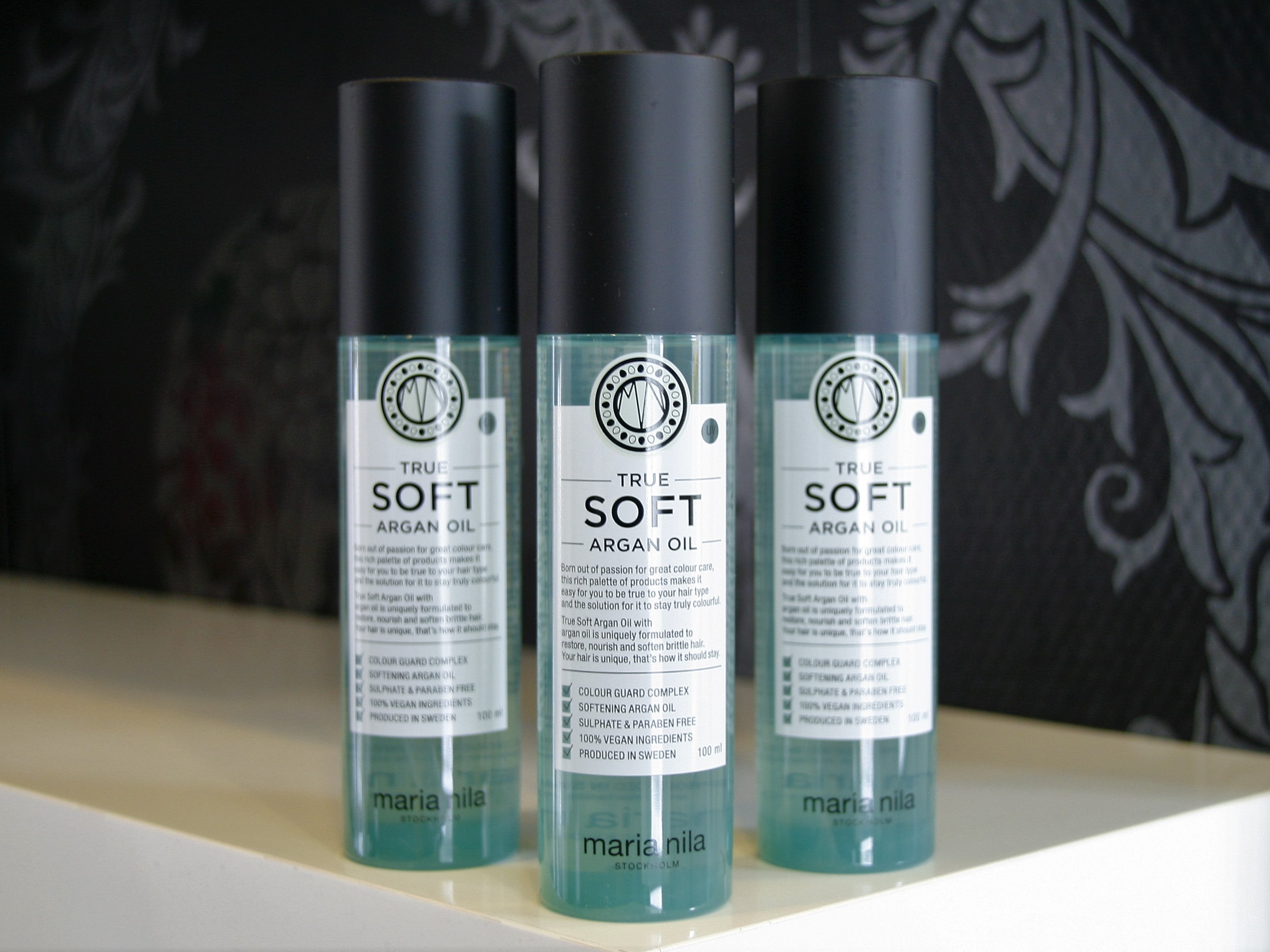 True Soft Argan Oil fra Maria Nila er en plejende argan-olie, der tilfører masser af fugt og næring til håret. Argan-olien fedter ikke håret, og den absorberes lynhurtigt ind i hårstråene. Derudover bekæmper olien effektivt frizz og flyvske småhår, så håret efterlades med en silkeblød, velplejet og glansfuld finish. True Soft-serien er særlig velegnet til tørt og genstridigt hår.